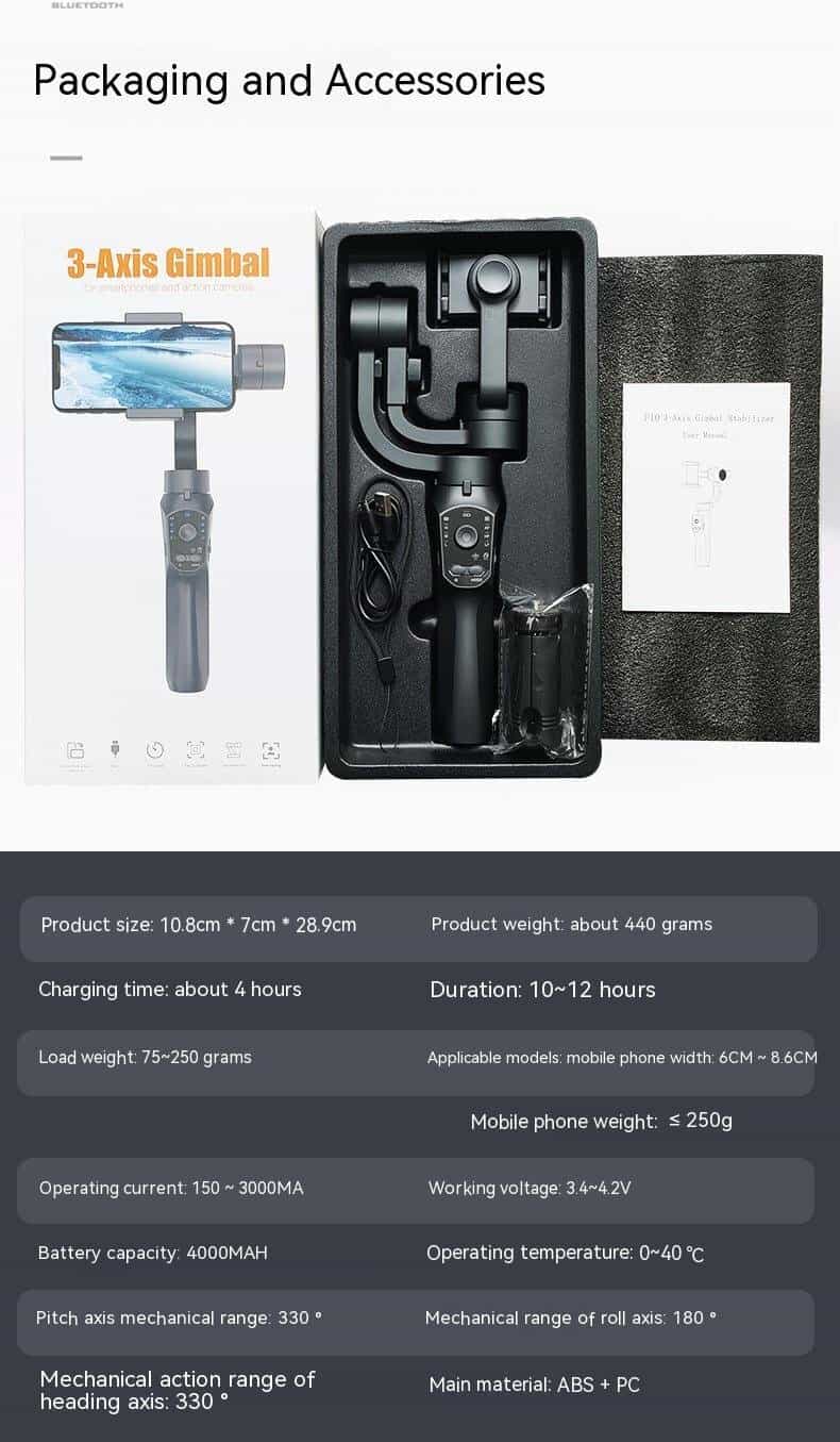 F10 Pro 3 Axis Gimbal Handheld Stabilizer Professional Smartphone Anti Shake Vlog Record Intelligent Tracking Action Camera Holders.
