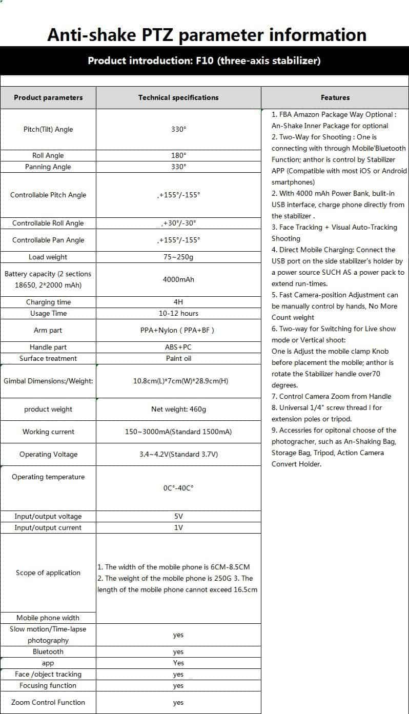 F10 Pro 3 Axis Gimbal Handheld Stabilizer