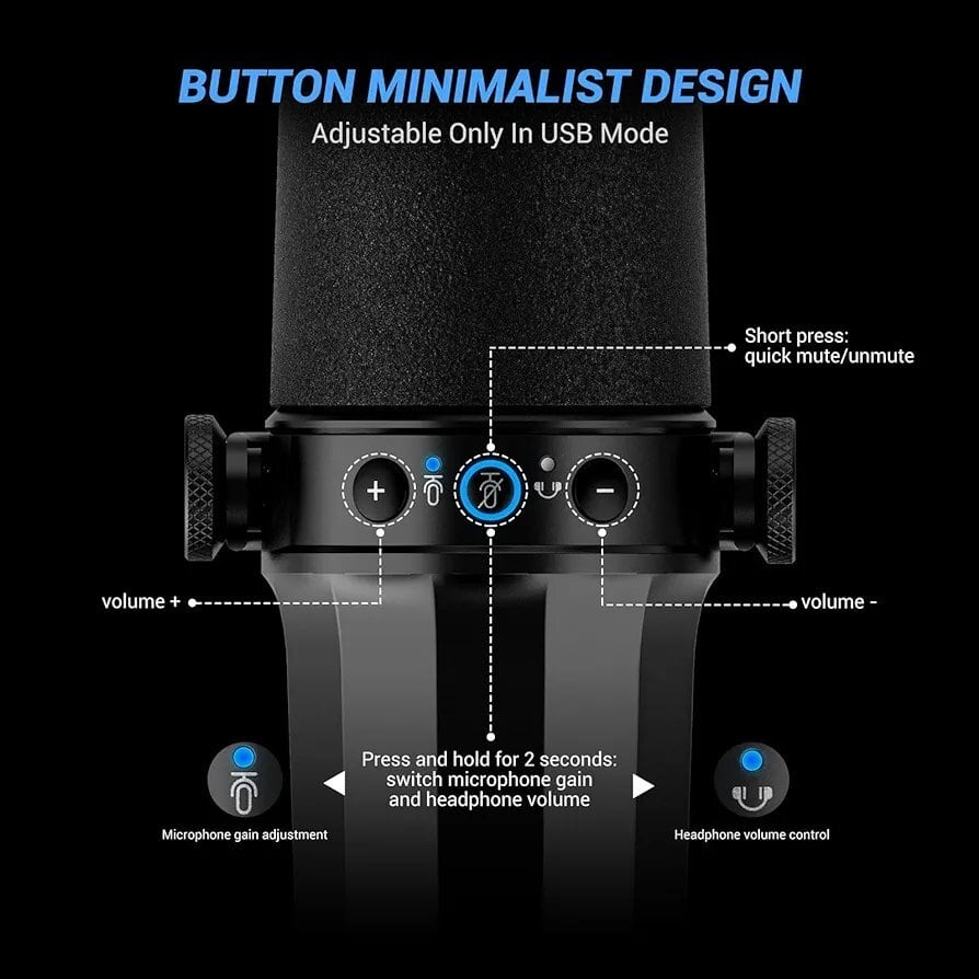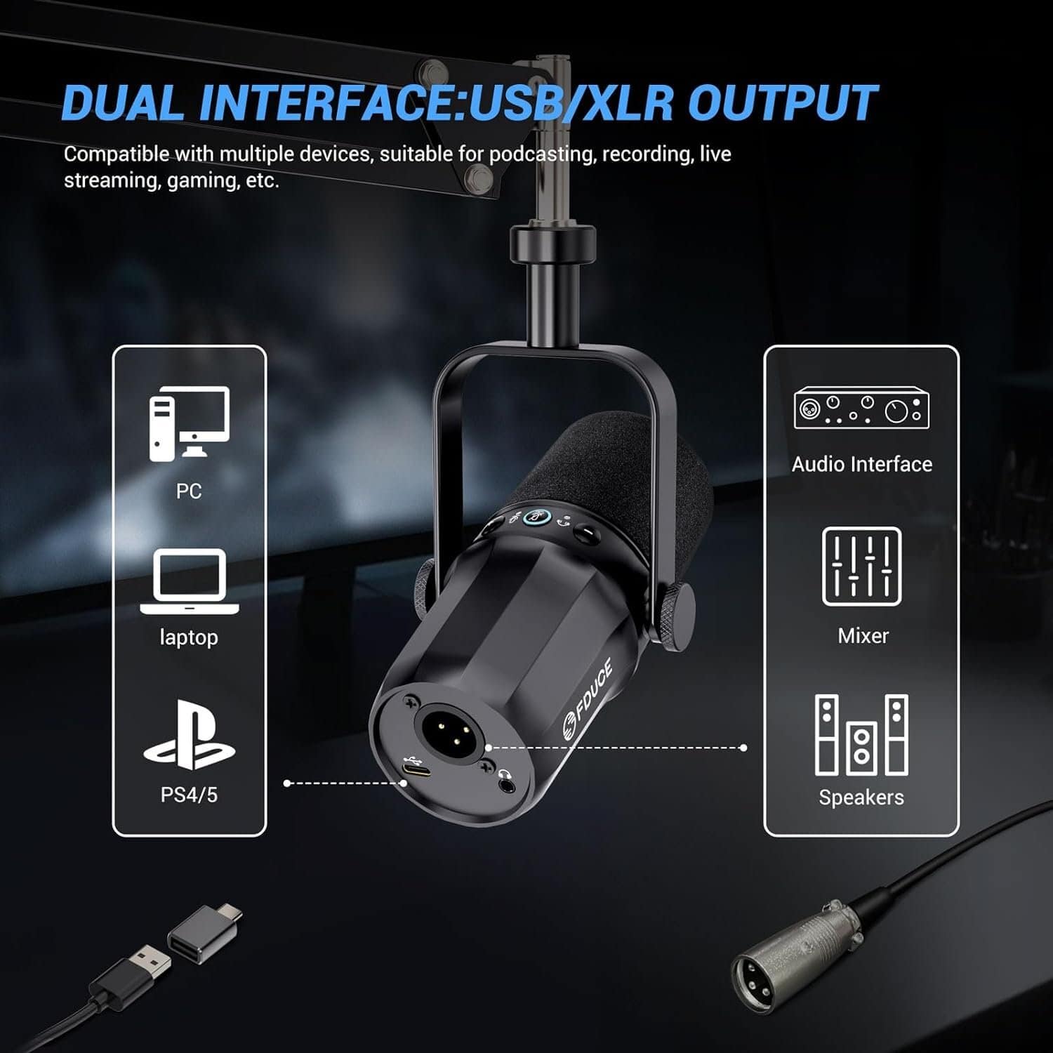 FDUCE SL40 plus Dynamic Podcast Microphone, USB/XLR Microphone kit for Streaming & Gaming, Boom Arm Stand Mic, Built-in Headphone Output, Mute Button, gain Button.