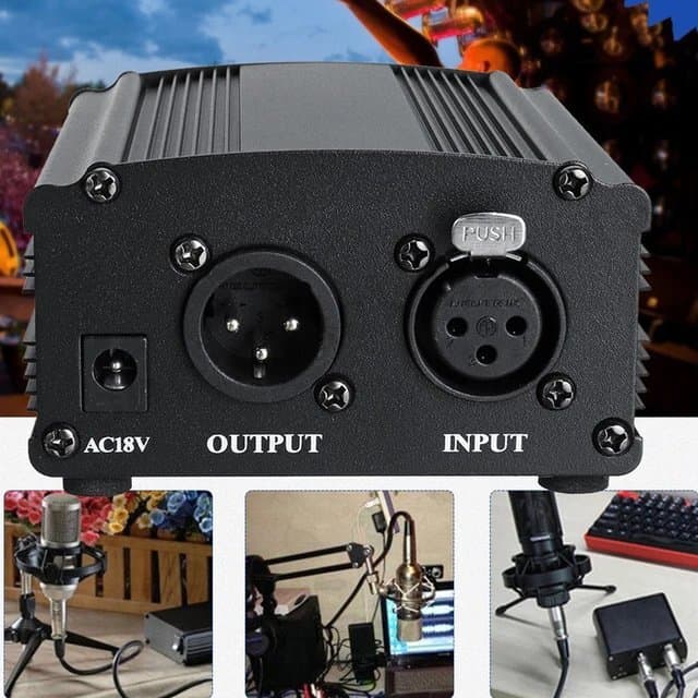 Phantom Power Supply 48V with Adapter Bonus +XLR 3 Pin Microphone Cable for Any Condenser Microphone Music Recording Equipment.